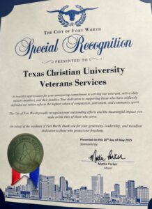 TCU Veteran Services received special recognition from The City of Fort Worth and Mayor Mattie Parker.